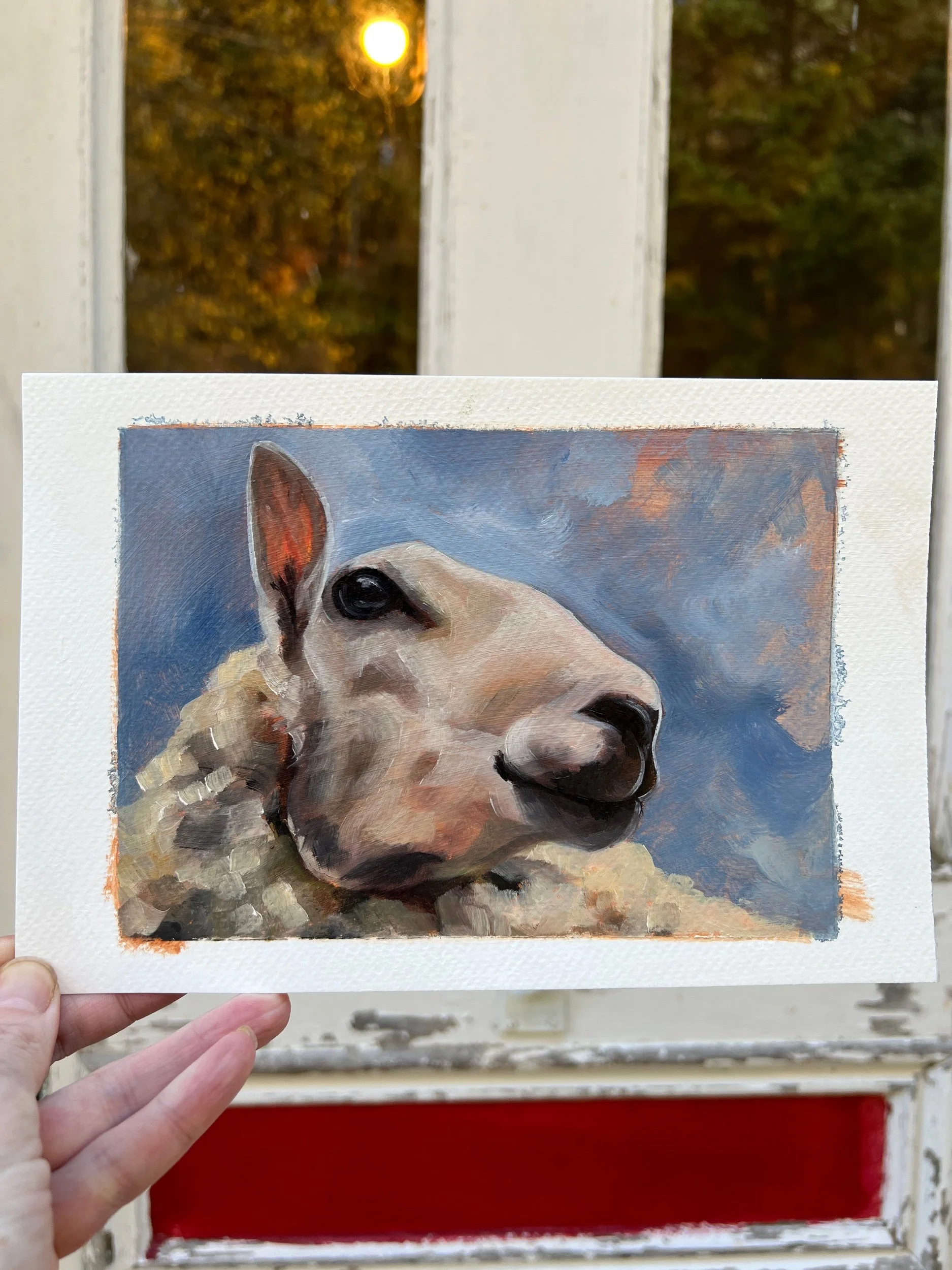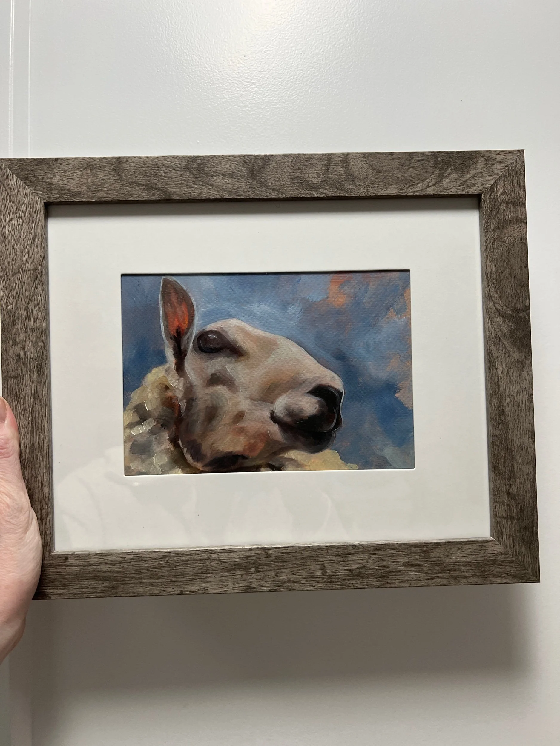 Shop Originals › Sheep Study Oil on Paper Image 1 of 2 Image 2 of 2 Sheep Study Oil on Paper CA$95.00 Get notified by email when this product is in stock. Add To Cart Added! 5x7 oil on 6x9 paper Matted and framed. 5x7 oil on 6x9 paper Matted and framed.