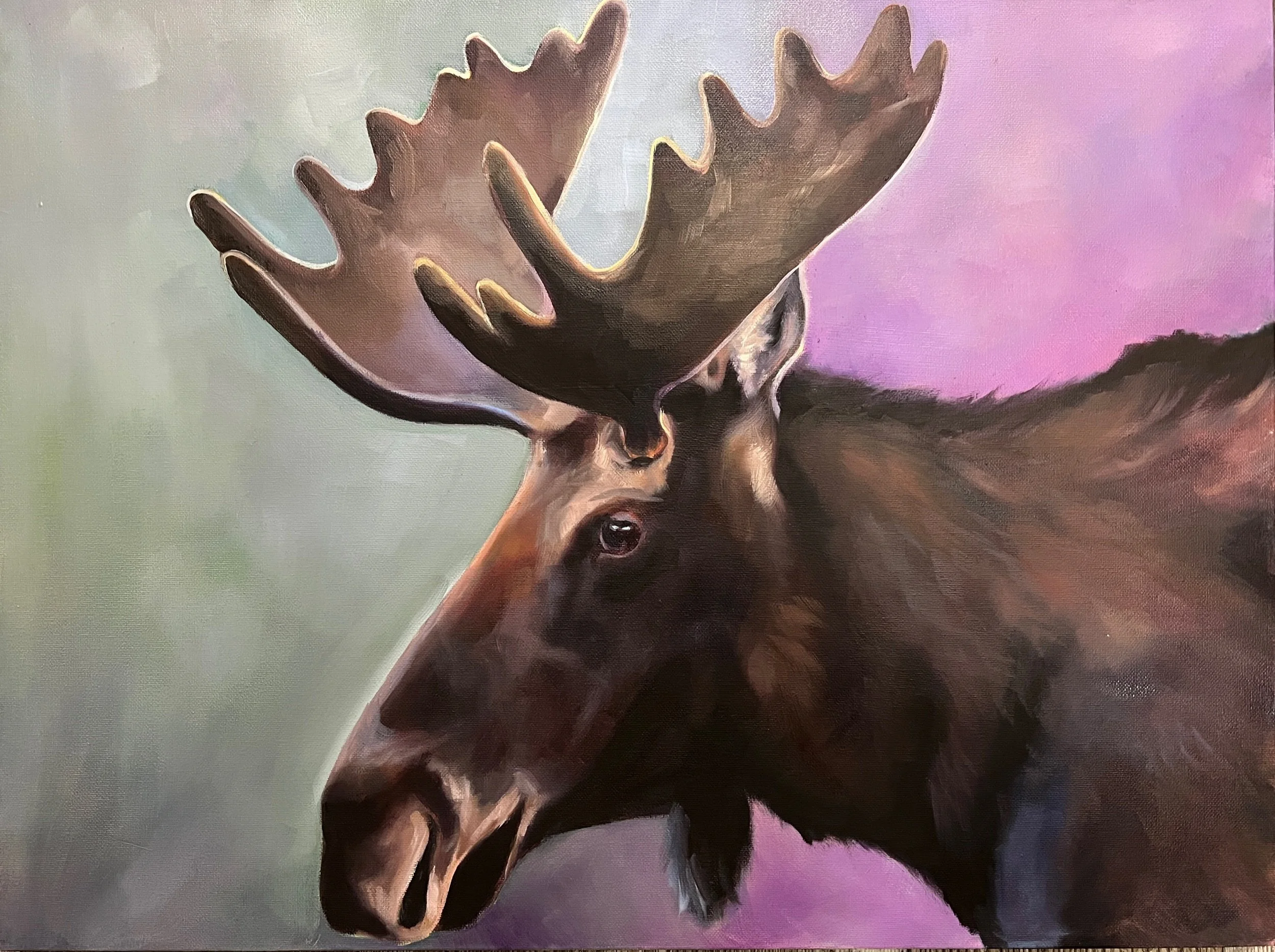 A soft veil of colour drifts across the canvas like morning mist settling over a quiet northern landscape. Moose Mist carries a sense of playful mystery—light, dreamy, and a little wild—evoking that magical moment when the forest feels still and anything might wander through the haze