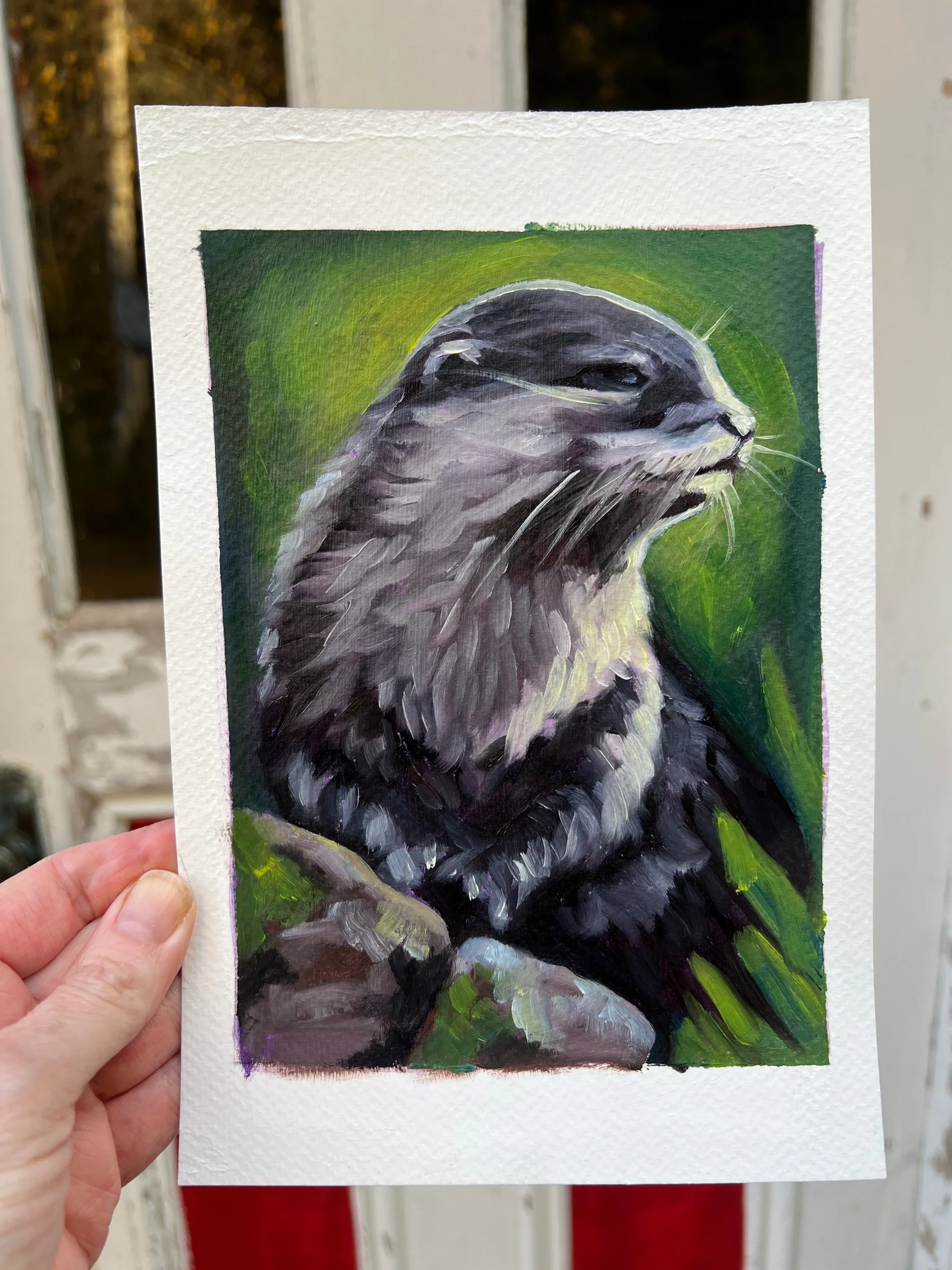 Shop Originals › Otter Study Oil on Paper Image 1 of 2 Image 2 of 2 Otter Study Oil on Paper CA$95.00 Get notified by email when this product is in stock. Add To Cart Added! 5x7 oil on 6x9 paper Matted and framed. 5x7 oil on 6x9 paper Matted and framed.